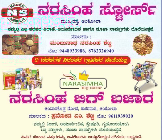 Narasimha Big Bazar, located on Ambarkodla Road, Kakarmath Ankola offers an unbeatable shopping experience with fast billing good services,